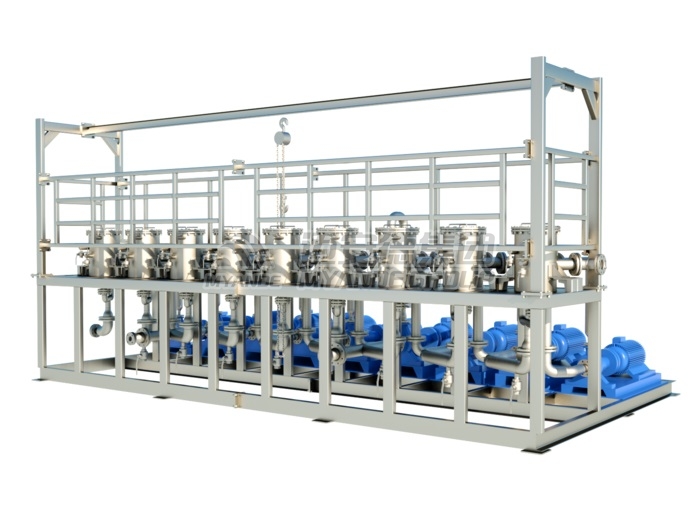 邁安德澄油箱用于機榨毛油的初濾,機榨毛油中含有較多的油渣和固體粉末,在進入精濾工序之前,須進行初濾,以分離出大顆粒固體。